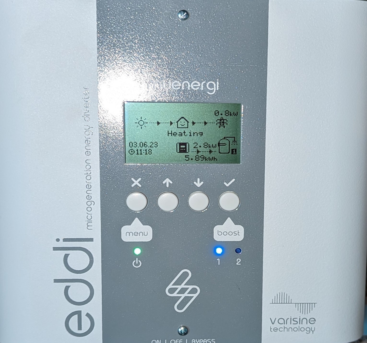 The smart microgeneration power diverter is the key element in this solution. It continuously monitors the electricity production from the solar PV panels and the energy demand within the property. By installing this Solar PV power diverter, we direct the excess energy generated by the solar panels to the Domestic Hot Water Cylinder instead of exporting it to the National Grid.