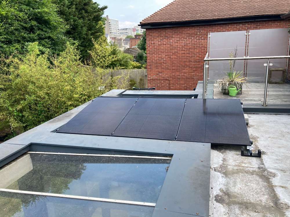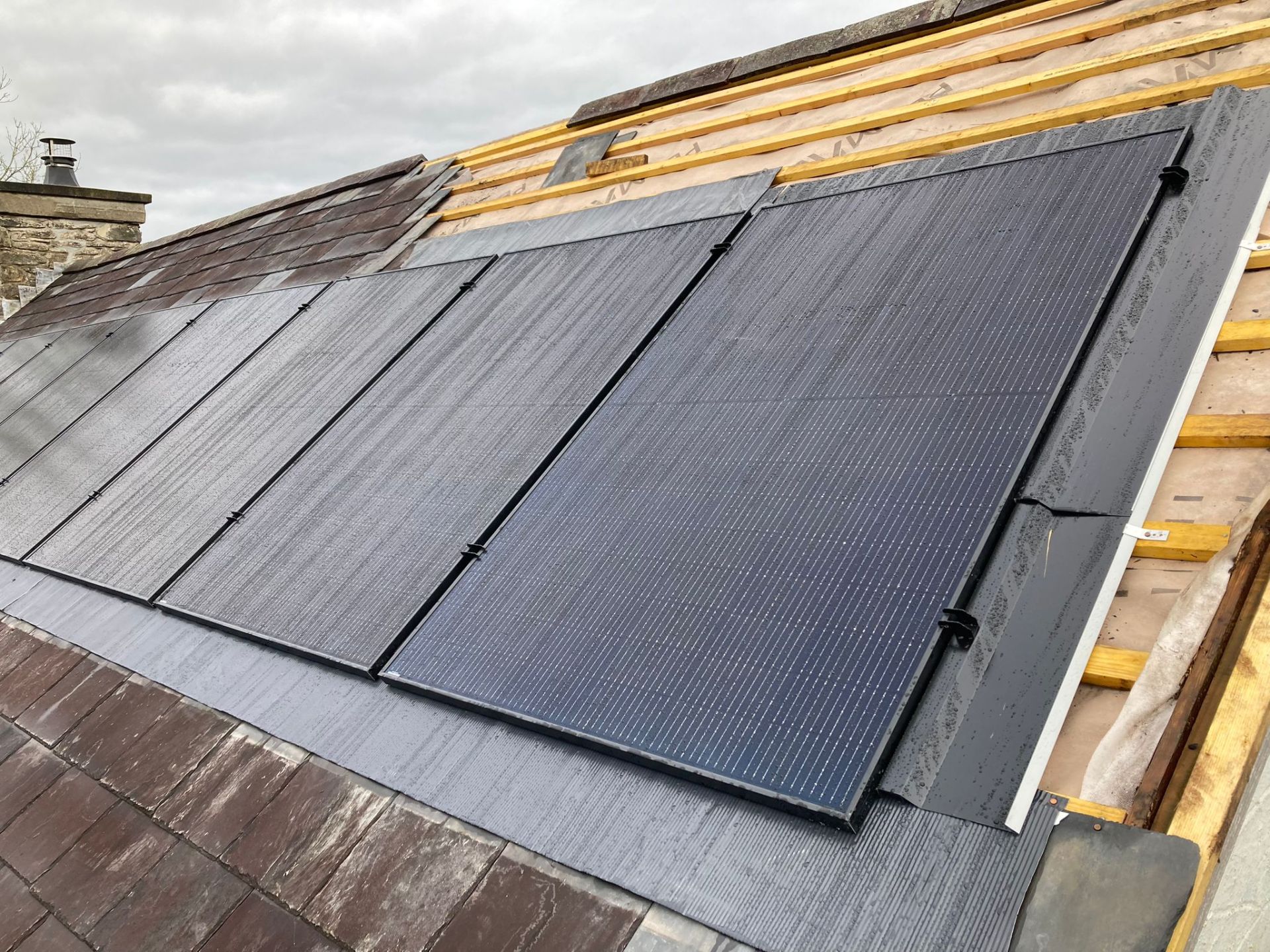 • All-Black Panels for Seamless Integration with 150-Year-Old Slate Roof