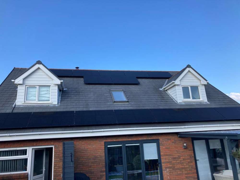 The project involved the installation of a 5.46kWp solar PV system composed of 14 x 390Watt solar panels, a 5.0kW SolaX Hybrid Inverter, and a Solax Battery with a capacity of 12.0kWh. The system was installed on a slate roof, offering both energy savings and environmental benefits to the homeowner.